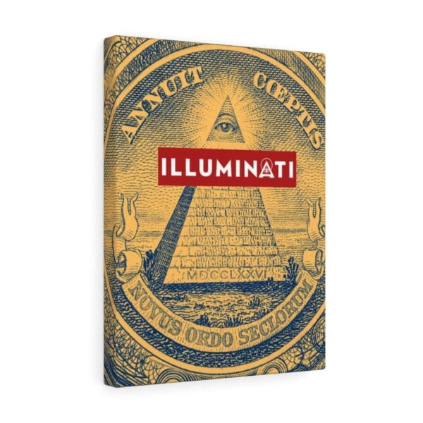 Novus Ordo Seclorum is a Latin phrase meaning “New Order of the Ages” and signifies the beginning of a new era. It appears below the All-Seeing Eye and the Pyramid – with the Illuminati’s Insignia – on this stunning canvas.